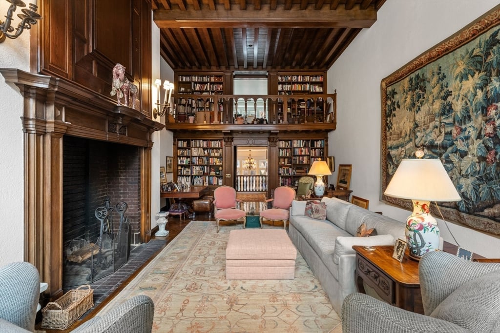 An exquisite city-center residence in an ambiance seeming like a tranquil garden suburb, this one-of-a-kind circa 1914 townhouse by noted architect Richard Arnold Fisher stands on a tree-canopied, block-long street on the Flat of Beacon Hill. Inspired by English traditions, this beautifully livable jewel with six fireplaces has been tastefully restored and renovated by its long-time current owners & features enchanting outdoor spaces on the private garden terrace and a roof deck where 360-degree views take in the gold-domed State House, Back Bay and Downtown. As the showpiece living/entertaining space, the lofty double-storied great room is at once grand and inviting, rising to a beamed ceiling above the luminous window wall, majestic fireplace and library wall with minstrel's gallery. The garden level's airy window-walled open space combines the gourmet kitchen and casual living/dining area. The versatile bedroom layout offers the option of creating an expansive full-floor primary!